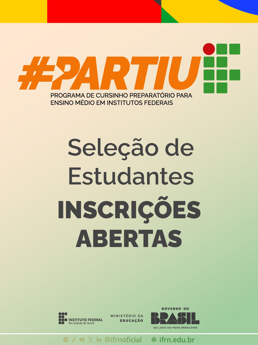 IFRN Zona Leste oferta vagas do Programa PartiuIF 2026 para estudantes do 9º ano