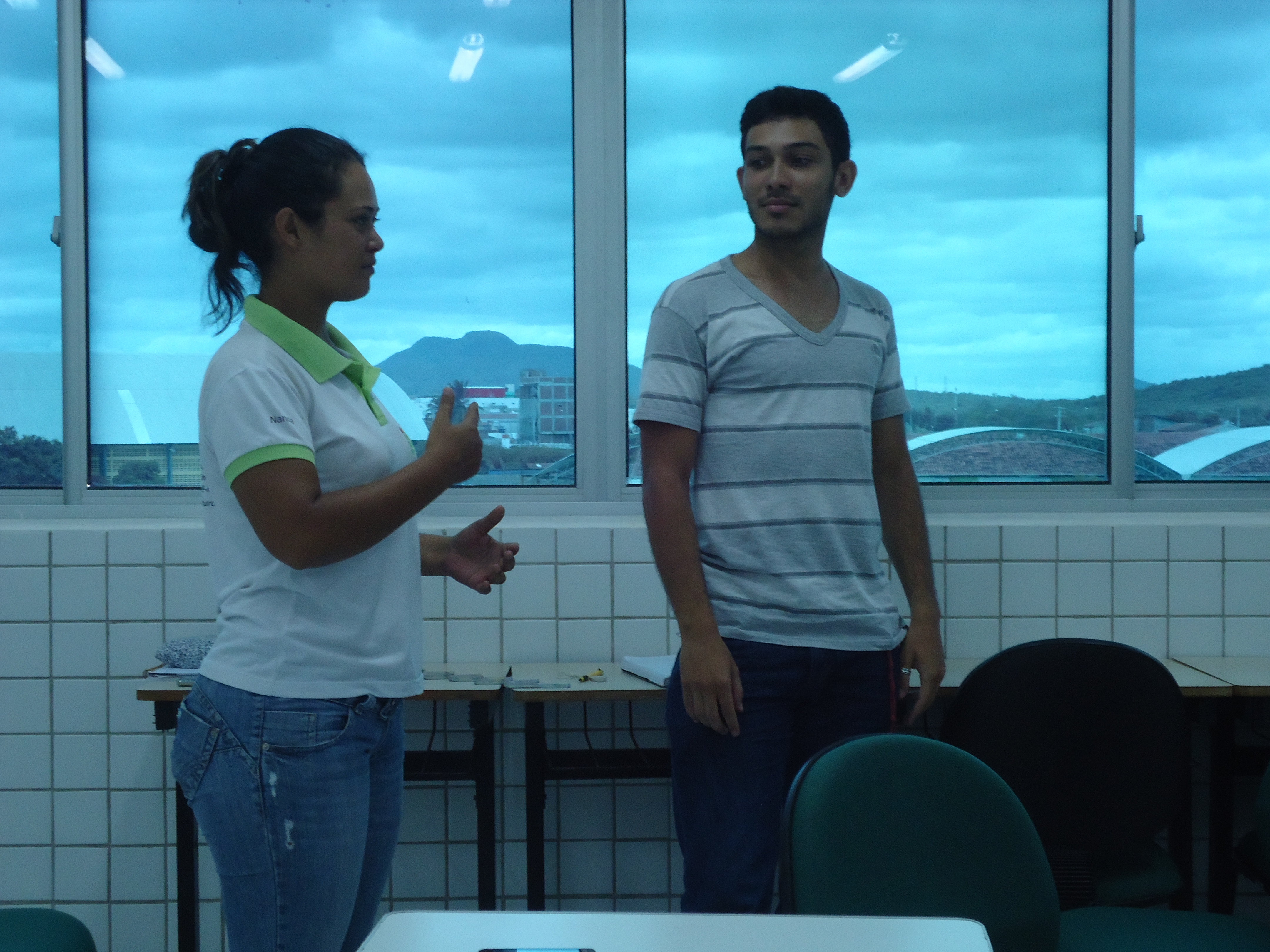 O período da noite foi o momento em que os alunos de Licenciatura em Biologia também participaram da oficina. “Os alunos estavam ávidos em discutir, refletir, construir e sistematizar conhecimentos a cerca desta língua tão envolvente. A turma, de maneira dialógica, participou de todo o desenvolvimento da aula, felizes ao experienciar uma outra modalidade linguística.”