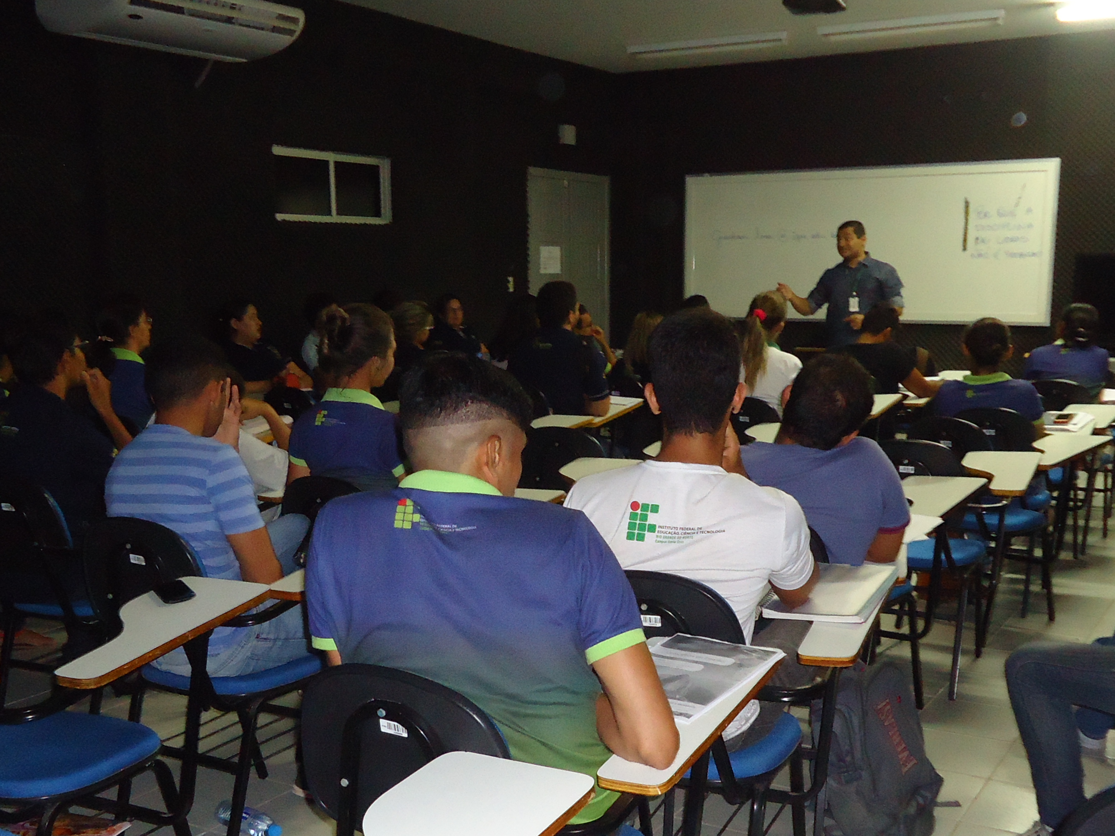 26 de fevereiro de 2016Os alunos do 8º período dos cursos de Licenciatura de Matemática, no polo de Santa Cruz, e de Licenciatura em Biologia, no polo de Macau, participaram, durante o último dia 24, da oficina presencial de Língua Brasileira de Sinais – Libras, realizada pelo professor Gueidson Pessoa de Lima.