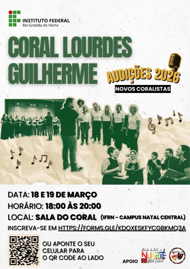 26 de fevereiro de 2026Estão Abertas as inscrições para audições de novos cantores do Coral Lourdes Guilherme.