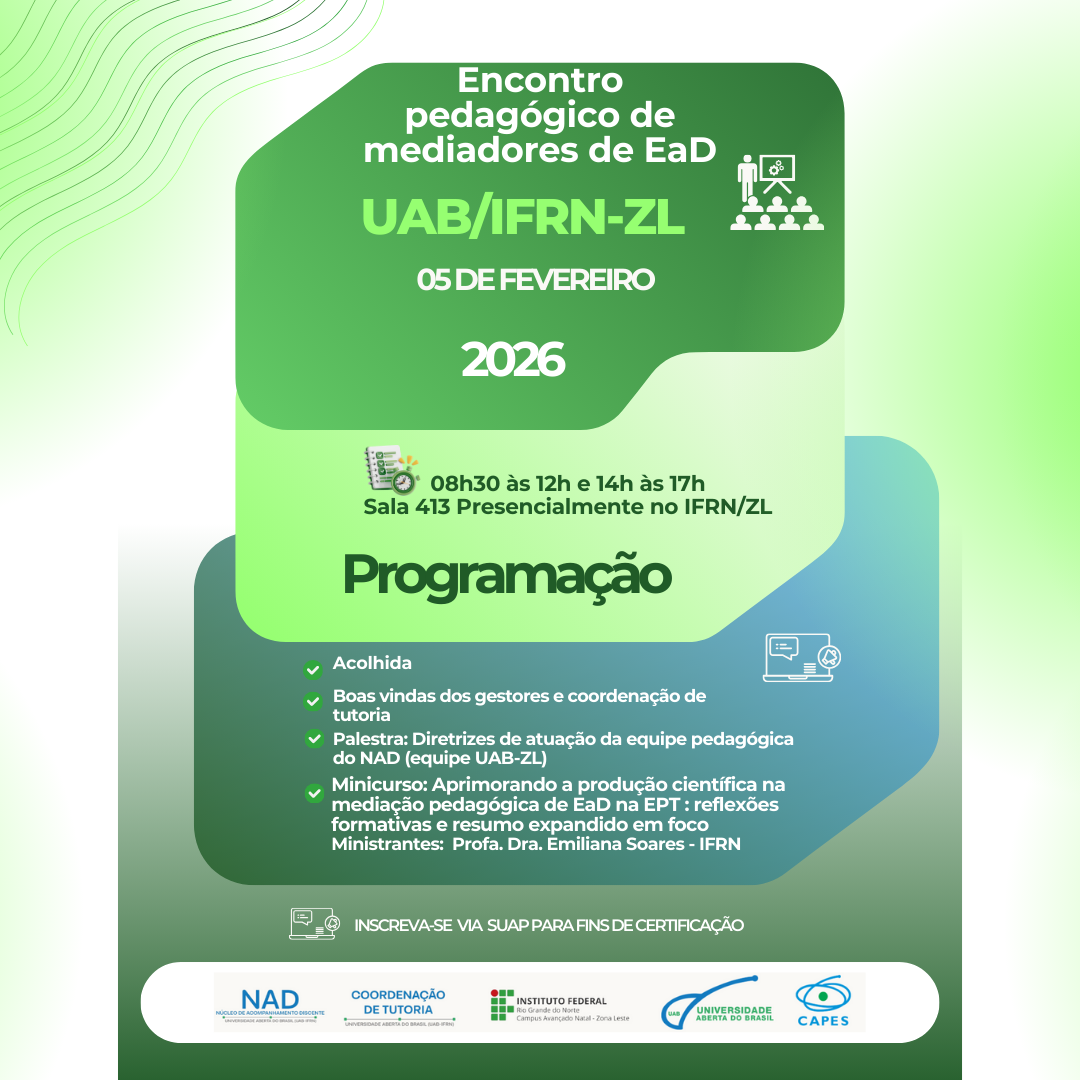 UAB/IFRN-ZL realiza Encontro Pedagógico de Mediadores de EaD com foco em permanência e êxito dos estudantes 06 de fevereiro de 2026