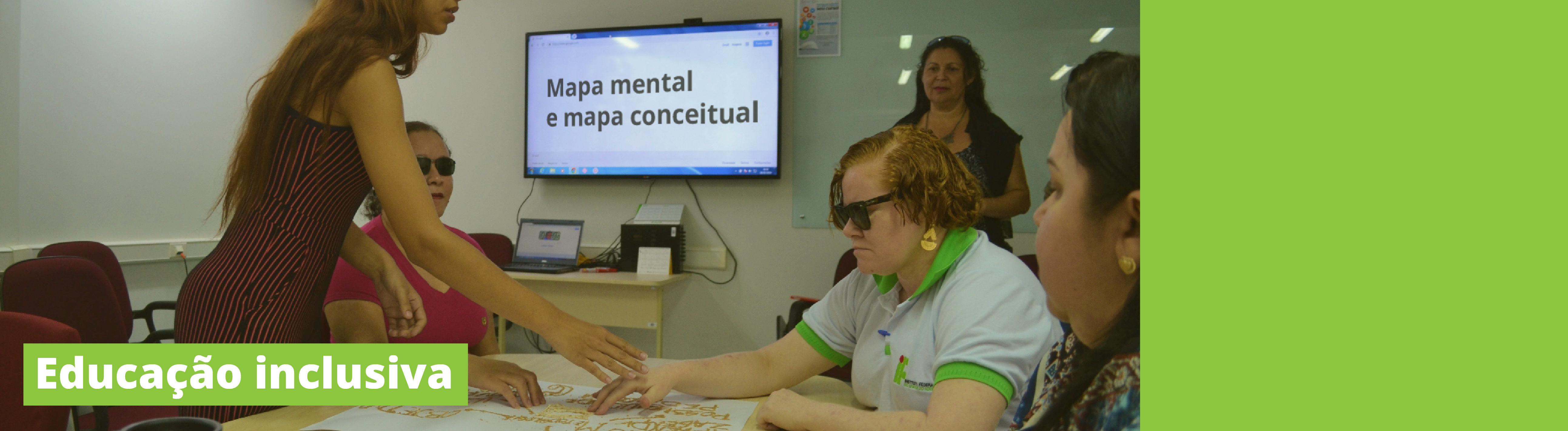Suzane Lins (em pé) ajudando as alunas a reconhecerem o mapa por meio do tato Uma das missões do ensino a distância é oferecer atividades…