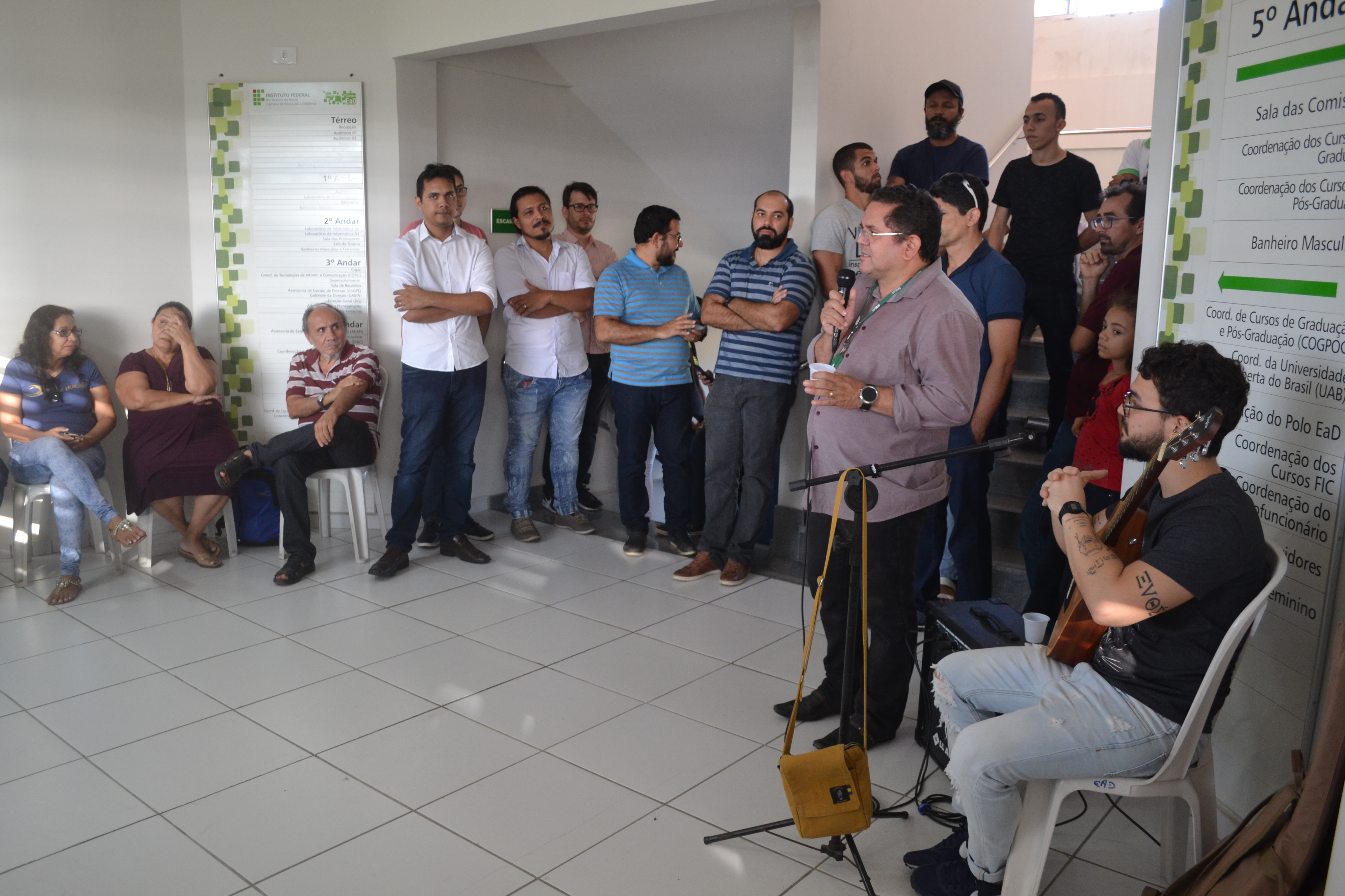 Cerca de 100 professores, servidores, bolsistas e funcionários terceirizados participaram da comemoração, que aconteceu na sede do Campus EaD. Com música ao vivo de Fillipe Toca e um coffee break natalino, os presentes puderam se confraternizar com todos aqueles que fazem parte do seu dia a dia.