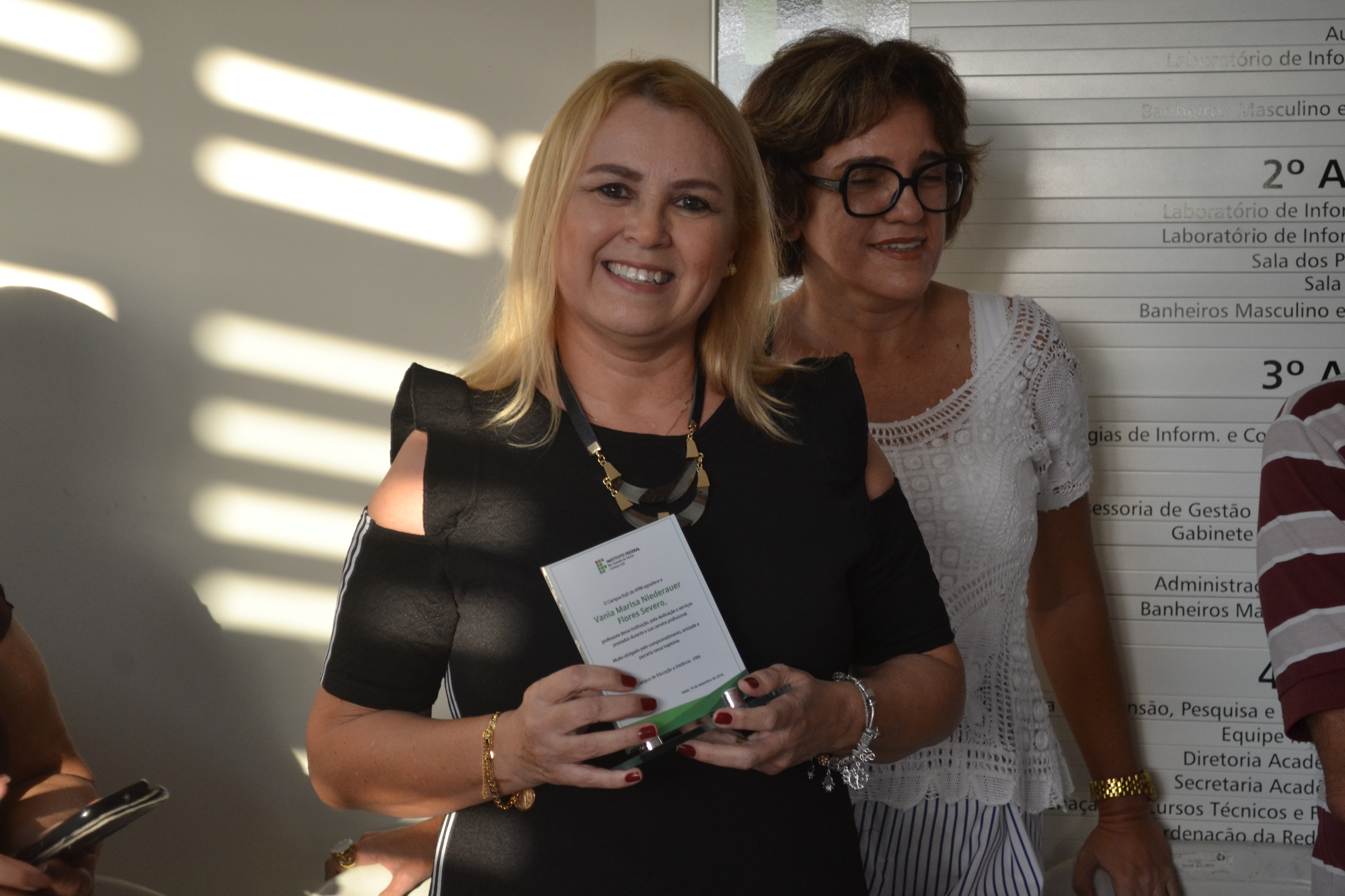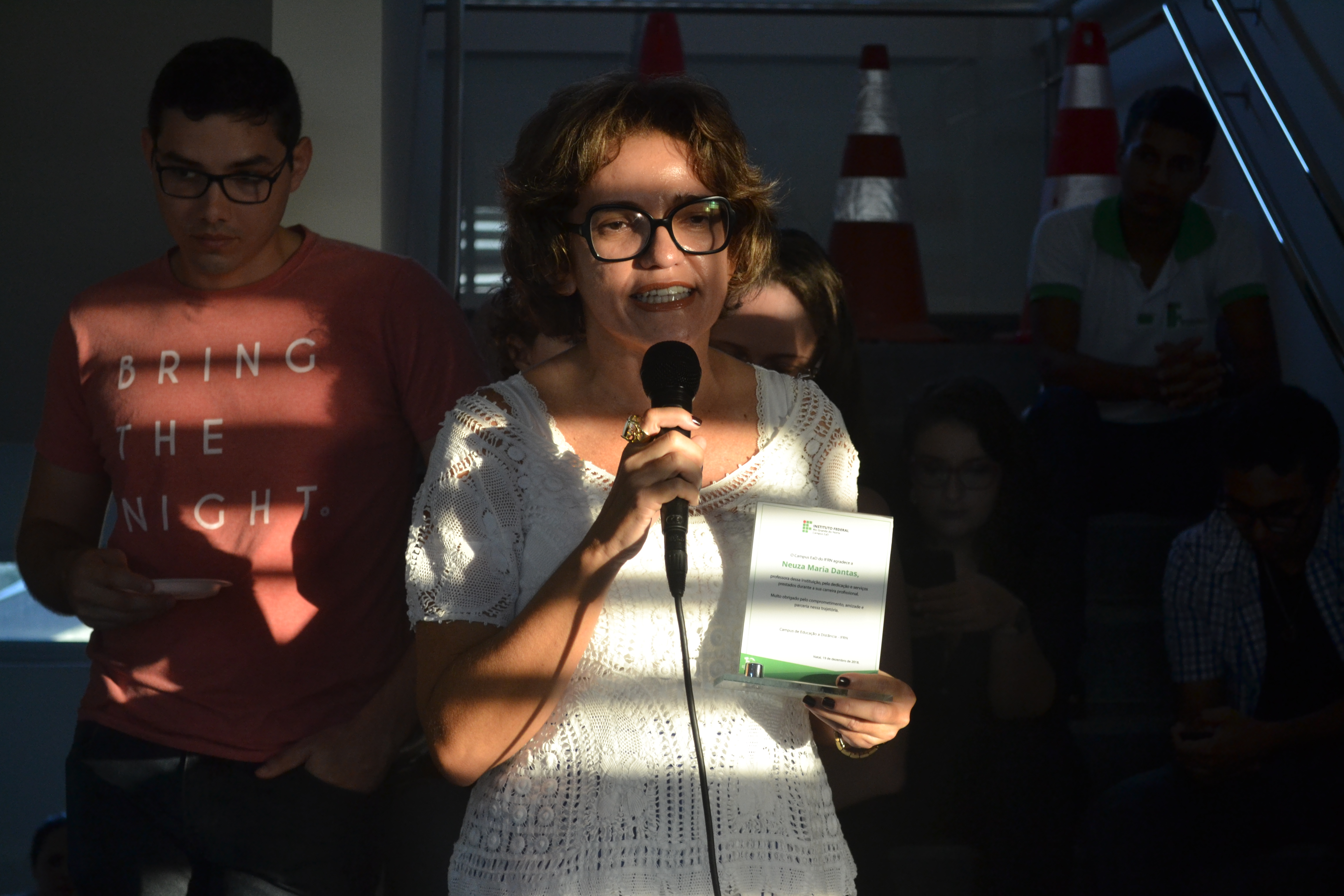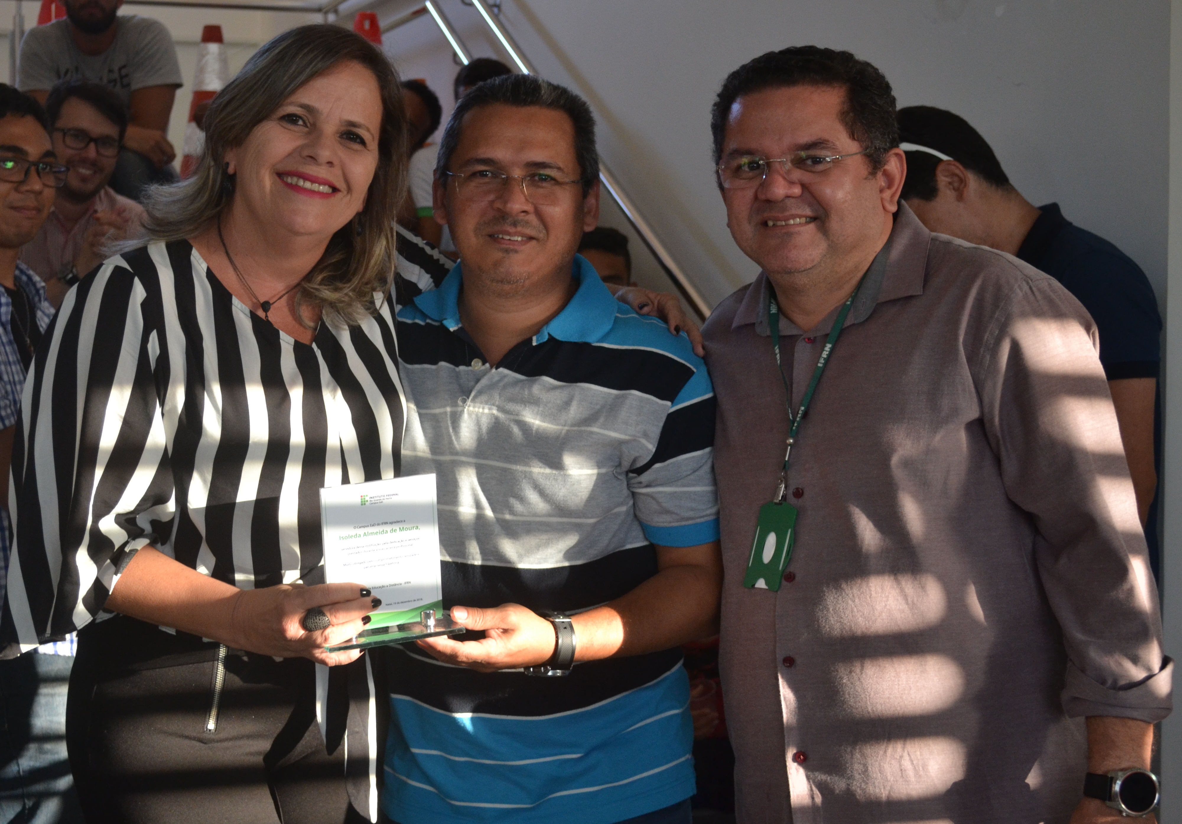 Em celebração às festas de fim de ano, o Campus EaD homenageou, nesta última quarta-feira (19), cinco servidores que contribuíram para a evolução e desenvolvimento da instituição. A partir de palavras de carinho e admiração de ex-colegas de trabalho, os homenageados aposentados receberam um troféu de agradecimento pelos anos de dedicação e trabalho no IFRN. “Esta homenagem simboliza anos de dedicação à educação pública e de qualidade. Eu relutei muito para me aposentar, mas é bom saber que nunca me afastarei do Campus EaD, porque aqui tenho amigos que vou levar pra vida toda”, disse a professora Elizabete Alves, uma das homenageadas.